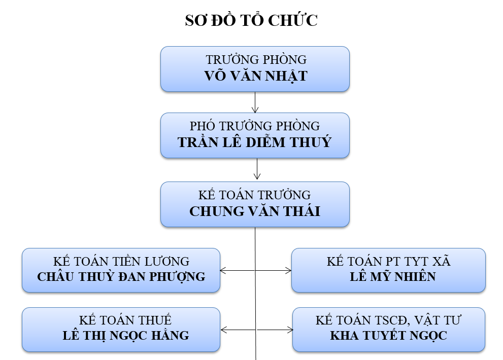 Phòng tài chính kế toán là phòng chuyên môn, nghiệp vụ chịu sự lãnh đạo trực tiếp của Giám đốc.